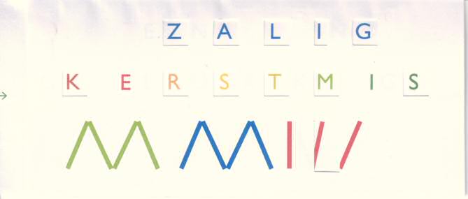 Het kaartje bestaat uit twee delen: een hoes met gaatjes, en een vel dat daarin heen en weer kan schuiven.