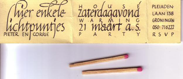 een uitnodiging geïnspireerd door een luciferdoosje, alleen platter.
