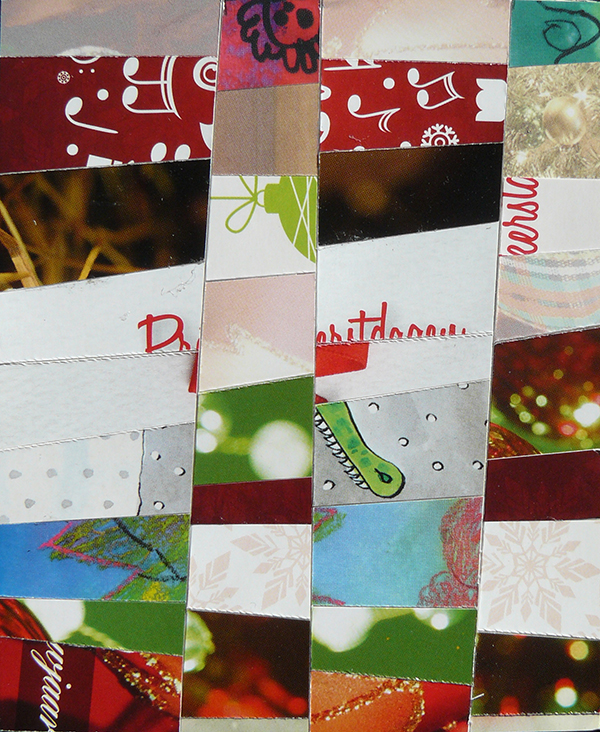 Collage van nooit verzonden kerstkaarten, om een ietwat akelig aflopend on-kerstverhaal van Corrie van Os te verluchten.
